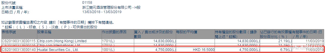 智通财经APP获悉,根据联交所资料显示,Huatai Securities Co., Ltd.于3月11日增持开元酒店(01158)475万股,每股作价16.50港元,总值7837.5万港元,最新持股数增至475万股,最新持股比例增至6.79%。