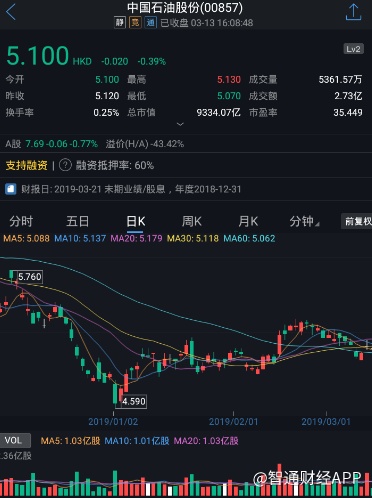 截至今日收盘,中国石油股份(00857)跌0.39%,报5.10港元。