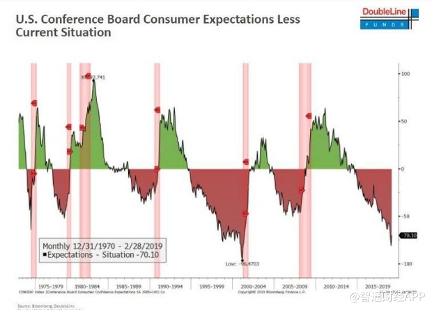 冈拉克指出了经济衰退的另一个危险信号,那就是消费者预期与当前形势之间的差距。