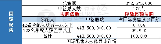 国际配售中签人数170人,认购倍数为轻微超额认购。