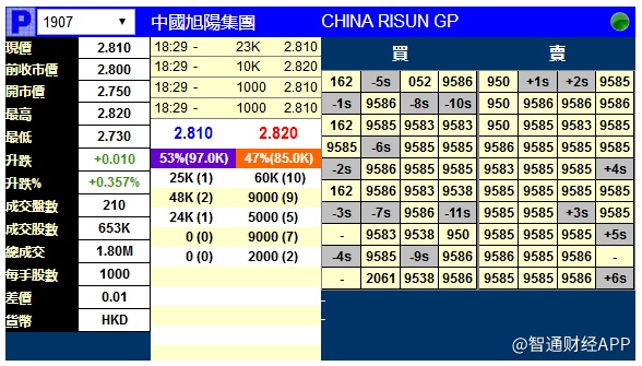 智通财经APP获悉,中国旭阳集团有限公司(01907)将于3月15日挂牌,上市前夕,据辉立交易场资料显示,暗盘收报2.81港元,较招股价2.80港元,升0.357%。每手1000股,不计手续费,每手赚10港元。