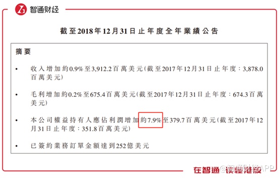 而看好公司发展的,无不是拿应占利润增长7.9%来说事儿的,却闭口不谈收入和毛利。且不说收入和毛利,就是这个应占利润,在智通财经APP看来,也谈不上硬气。
