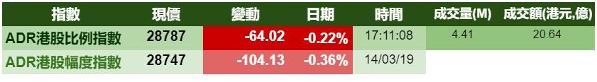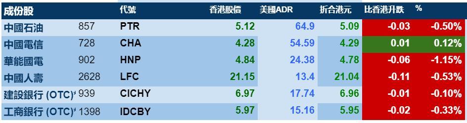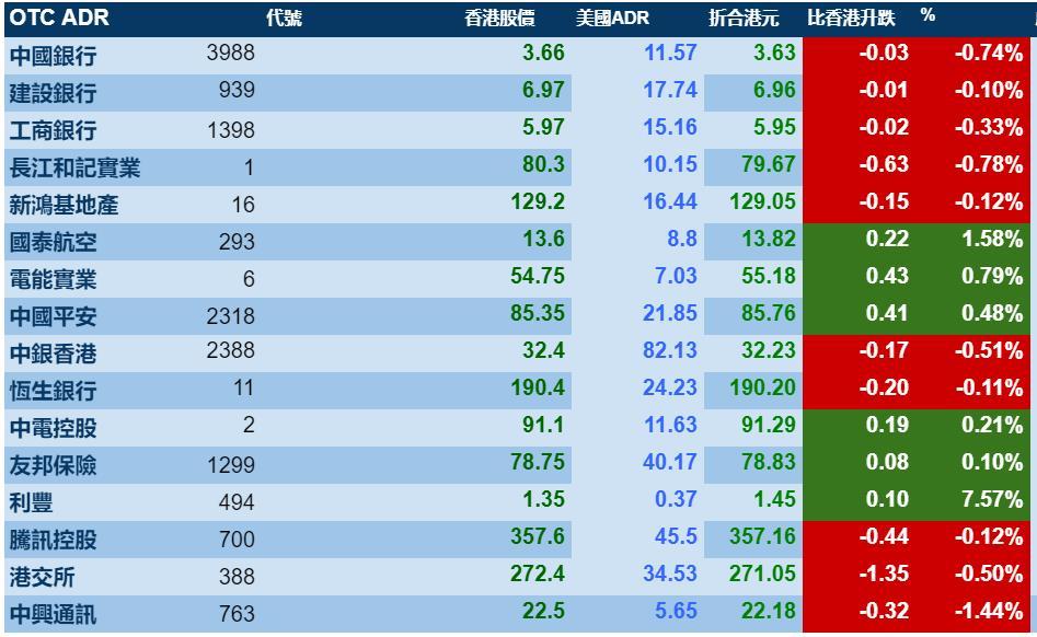 智通财经APP获悉,周四美股已出现疲态,港股ADR指数按惯例未能走出独立走势,也出现下跌,按比例计算,收报28787点,跌64.02点或0.22%。蓝筹股绝大多数下跌,汇丰控股收报64.59点,较香港跌0.10%,而腾讯收报357.16点,较香港收跌0.12%,中国平安报85.76点,较香港收涨0.48%。