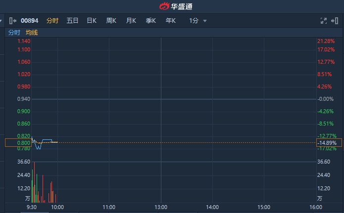 智通财经APP获悉,万裕科技(00894)早盘跳空低开,低位震荡,截至9时57分,跌14.89%,报0.8港元,成交额达217.6万港元。