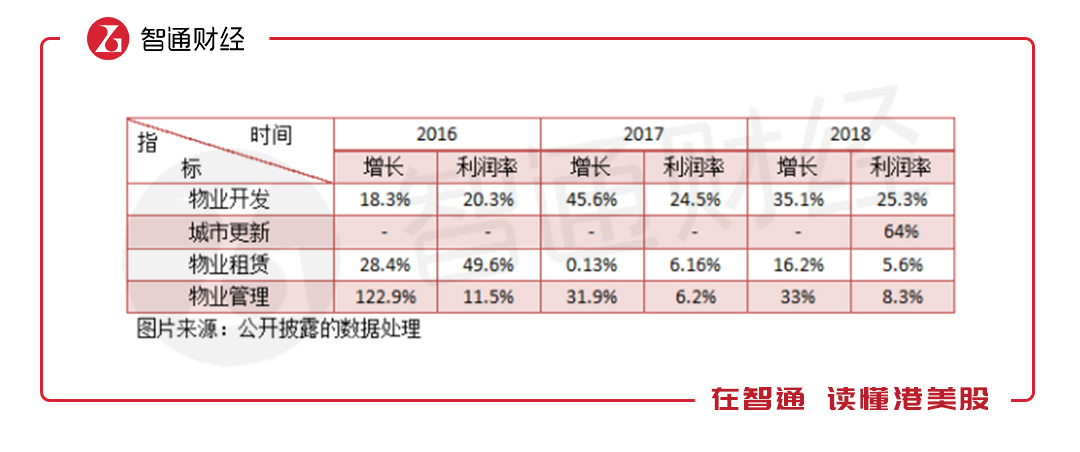 从单个业务盈利水平看,物业开发、城市更新、物业租赁以及物业管理四大业务的利润率分别为25.3%、64%、5.6%和8.3%。显然,这次分部利润增量主要贡献来自城市更新业务,增量贡献率达44.4%,扣去城市更新业务,该公司分部利润率为24.9%,降低3.15个百分点。
