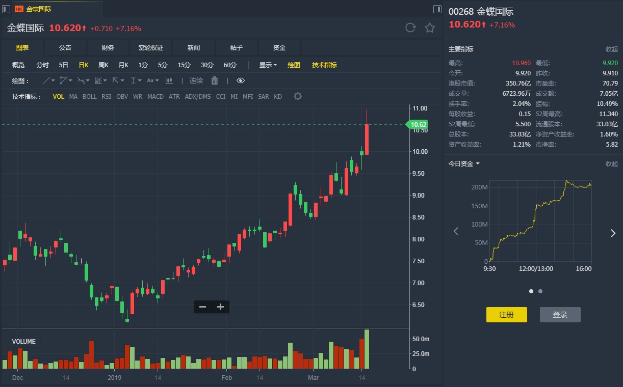 报告称,金蝶是该行的首选TMT非硬件股之一,其年初至今股价表现良好。 尽管近期股价反弹,该行维持“买入”评级,新目标价为11.97港元(基于65倍2019年市盈率,高于历史平均水平(约49倍),但低于其A 股上市同业用友网络的74.9倍2019年市盈率)。若公布业绩后股价回软,都有机会带来重新进场的机会。