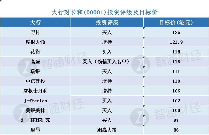 三、大行对长和(00001)最新评级与目标价