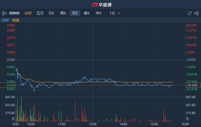 智通财经APP获悉,丝路物流控股(00988)早盘跳水走低后,维持低位横盘整理,截至15时33分,跌18.18%,报0.054港元,成交额达807.7万港元。