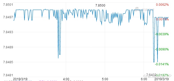 智通财经APP获悉,3月19日清晨,香港金融管理局再度入市干预,买入20.1亿港元,以捍卫联系汇率机制,银行体系结余将跌穿700亿港元。截至北京时间6:38,美元/港元报7.8495,逼近7.85弱方兑换保证。