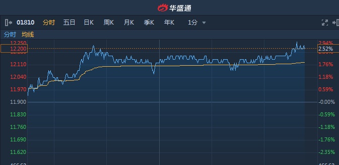 智通财经APP获悉,小米集团(01810)即将发布上市后首份年报,受市场关注,截至15时45分,涨2.69%,报价12.22港元,成交额11.34亿。