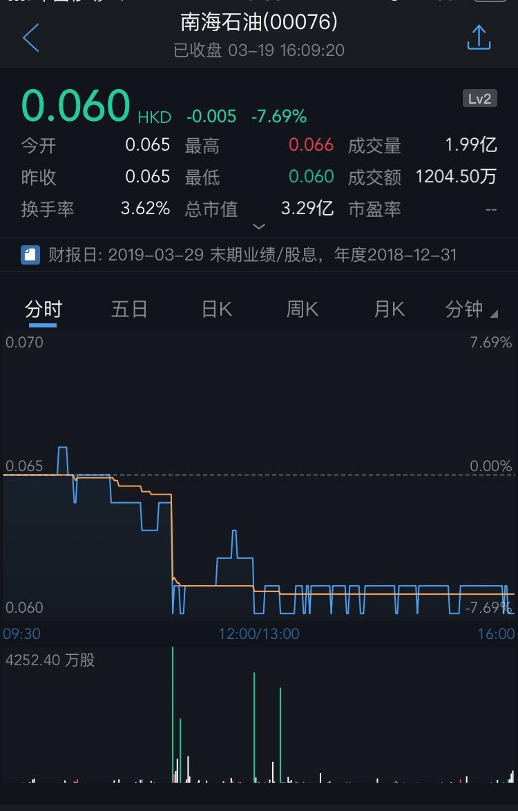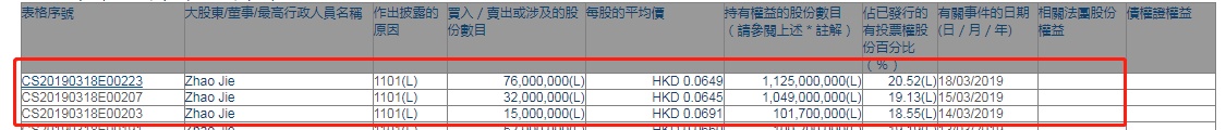 智通财经APP获悉,根据联交所资料显示,Zhao Jie分别于3月14日、15日以及18日增持南海石油(00076)合共1.23亿股,每股作价依次为0.691港元、0.645港元以及0.649港元,总值803.29万港元,最新持股数目11.25亿股,最新持股比例增至20.52%。截至今日收盘,南海石油(00076)跌7.69%,报0.06港元。