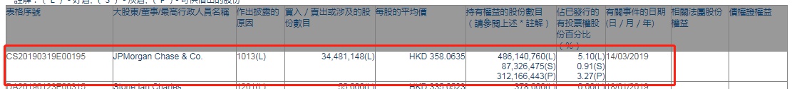 智通财经APP获悉,根据联交所资料显示,摩根大通于3月14日增持腾讯控股(00700)3448万股,每股作价358.06港元,总值123.46亿港元,最新持股数目4.86亿股,最新持股比例增至5.10%。