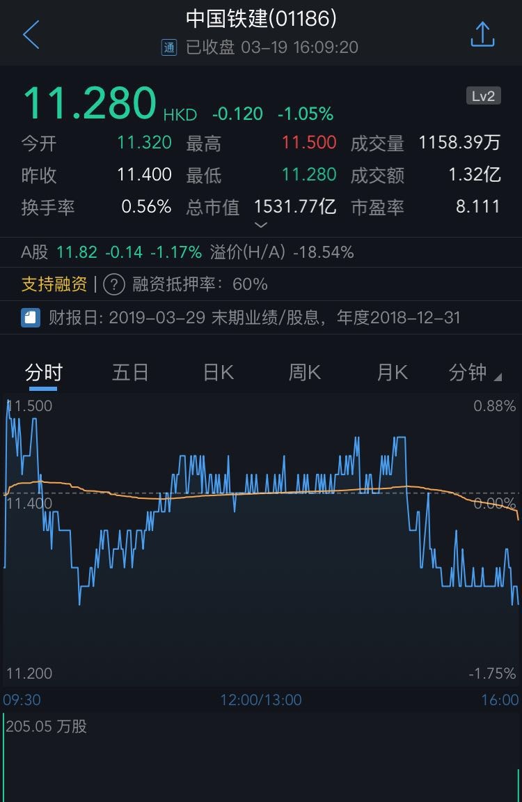 截至今日收盘,中国铁建(01186)跌1.05%,报11.28港元。