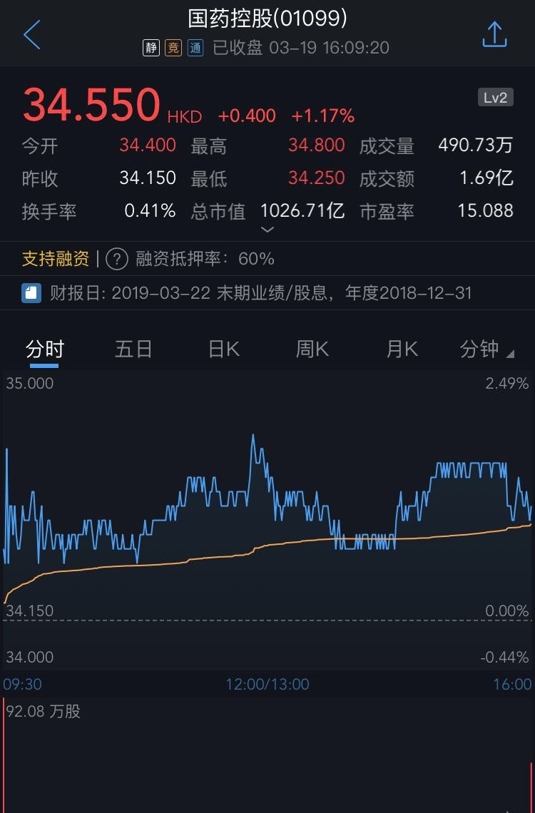 截至今日收盘,国药控股(01099)涨1.17%,报34.55港元。
