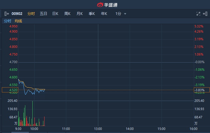 智通财经APP获悉,华能国际电力(00902)近期持续下跌,今日再度低开低走,截至10时18分,跌3.83%,报4.52港元,成交额达9490万港元。
