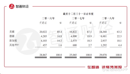 而从业务区域的分布上看,主要集中在美国和德国。具体数据显示,2018年美国、德国、新加坡和其他市场的收益占比分别为63.2%、22.3%、10.1%和4.4%。显然,业务区域也太过集中,不利于风险分散。
