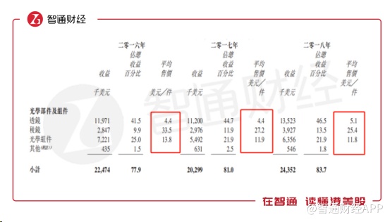 除了客户过于集中外,公司议价能力也不足,产品价格大幅波动,这在一定程度上加剧营收的波动,也从另一个角度说明,公司在光学产品市场上处于被动的局面。以光学部件及组件的相关产品为例,透镜的平均售价在2018年同比上涨16%,但稜镜的平均售价连跌三年,跌幅达到24%,光学组件的平均售价亦是连跌三年,跌幅14%。
