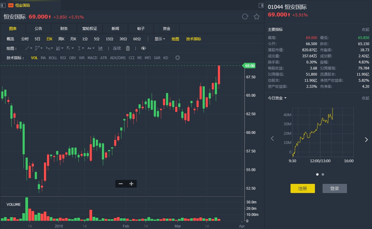智通财经APP获悉,大和资本发表研究报告称,恒安国际(01044)2018业绩反映净利润同比持平于38亿元人民币,逊于市场及该行预期,主要基于纸巾业务毛利率疲弱。不过,该行估计公司今年盈利可受惠于较低的木浆价格,重申予其“买入”评级,目标价由74.5元调升至79.3元。