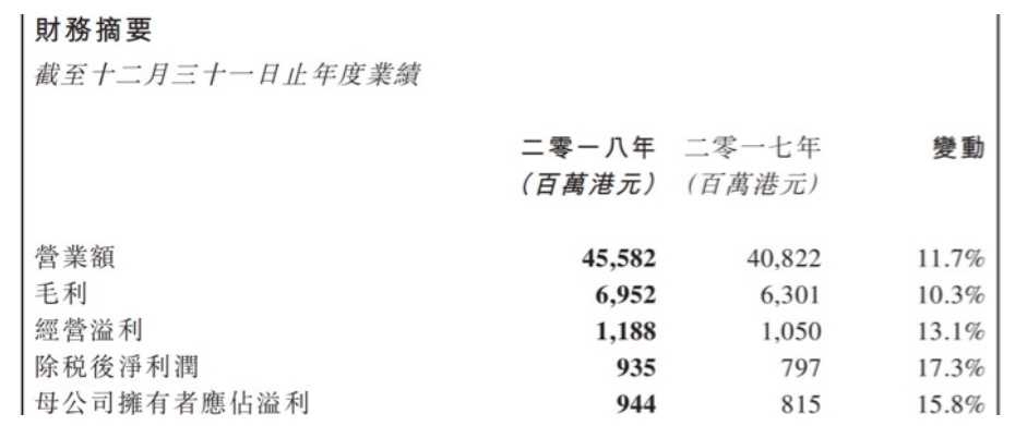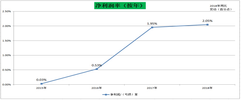 财报显示,TCL电子2018年全年经营溢利为11.9亿港元,同比增长13.1%;除税后净利润为9.4亿港元,同比增长17.3%;扣非后归母净利润为7.8亿港元(不包括一次性收益),同比大幅增长30.8%。值得注意的是,TCL电子近年来的净利润率持续攀升,于2018年达到2.05%。