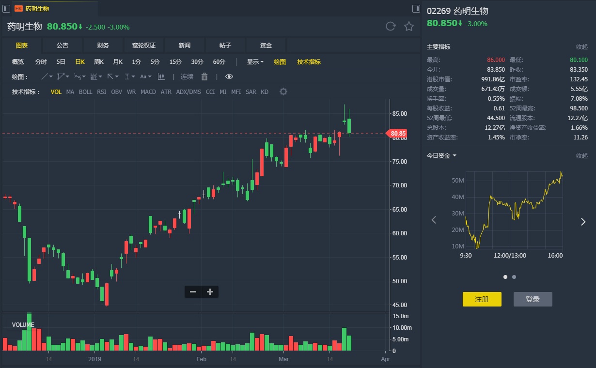 该行称,去年来自内地的收入贡献整体收入38.7%,增长率超过77.5%,预期随着中央大力推动创新,公司相关收入将会有更大增长,看到其在内地的市占率已由2015年的36.4%,上升至2018年的75.6%。该行将公司的目标价由原来的105元上调至120元,相当于2020年预测市盈率70倍,投资评级为“增持”。