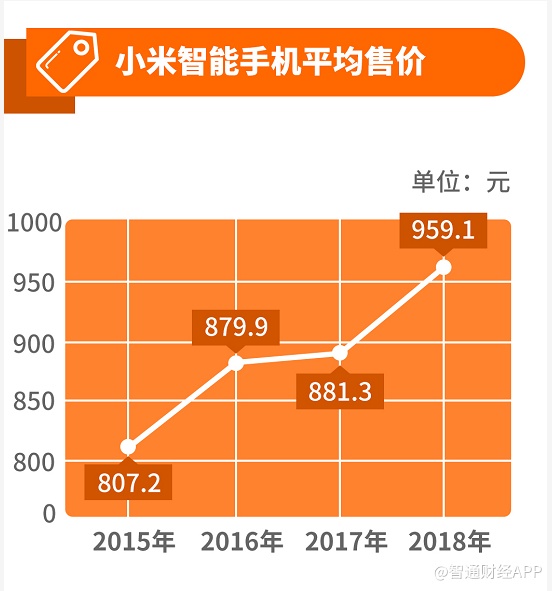 而在2018年发布的15款手机产品中,以小米8系列、小米Mix系列为主,只发布了4台红米,占比不到3成,中高端产品占比上升。在2018年四季度,底价3299的Mix 3取代了在2017年凭借低价迅速放量的红米产品。这组数据足以反映小米中高端化策略的成功。