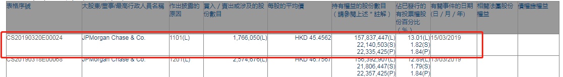 智通财经APP获悉,根据联交所资料显示,摩根大通于3月15日增持瑞声科技(02018)176万股,每股作价45.46港元,总值8000.96万港元,最新持股数目1.57亿股,最新持股比例至13.01%。