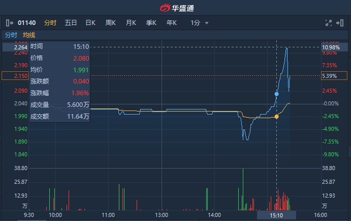 智通财经APP获悉,东英金融(01140)尾盘快速拉升,一度涨超10%,截至15时24分,涨5.39%,报2.15港元,成交额达1867万港元。