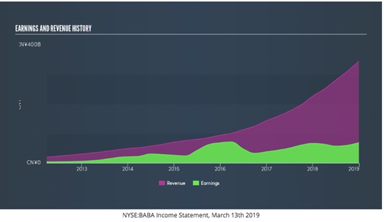 以五年维度来看,阿里巴巴的收入和利润呈现健康稳定增长状态