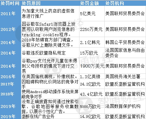 此外,智通财经APP整理了近年来谷歌的“历史罚单”。