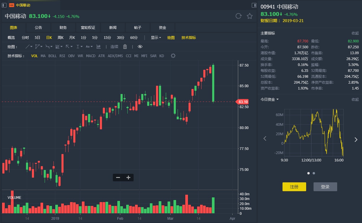 智通财经APP获悉,瑞银发表报告称,中国移动(00941)去年税后溢利高于市场预期2%,主要由于中国移动持股的中国铁塔(00788)上市收益多于预期,加上折旧开支较预期少。EBITDA较市场预期低1%,派息比率上升至49%符预期,不过较该行预期低1%,相信在近期股价上升的情况下,如此派息比率或令市场失望。另外正面因素尚包括撇除5G资本开支将降10%,但管理层未有给予指引。维持“买入”评级,目标价94元。
