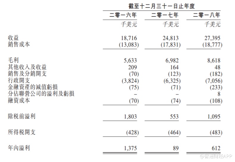 该集团年内溢利由截至2016年12月31日止年度约140万美元减少约130万美元或93.5%至截至2017年12月31日止年度约89000美元。截至2018年12月31日止年度的年内溢利增长约50万美元或585.5%至约60万美元,该增幅乃主要由于毛利增长,而部分毛利乃被增加的行政开支抵销。
