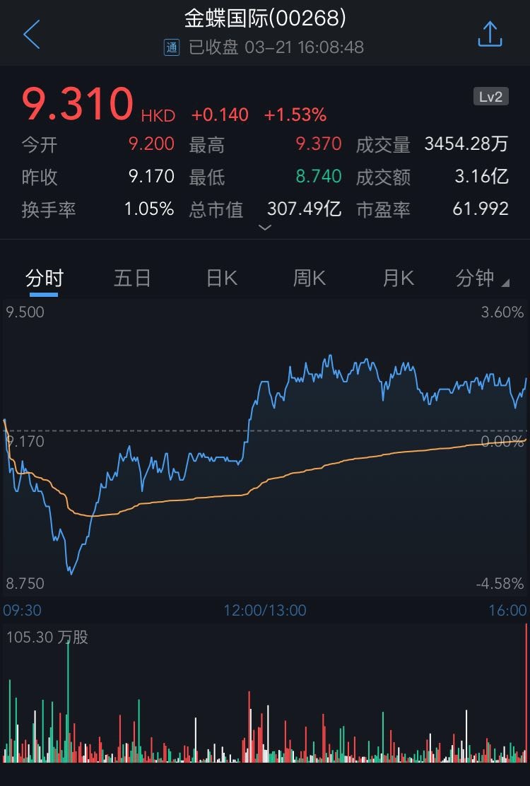 截至今日收盘,金蝶国际(00268)升1.53%,报9.31港元。
