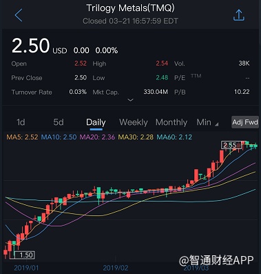 Trilogy Metals Inc创立于2004年,原是NovaGold Resources的全资子公司,于2012年4月30日分拆出来独立在AMEX上市,总部位于加拿大温哥华,是一家基础金属勘探公司,在美国从事矿产的勘探和开发。