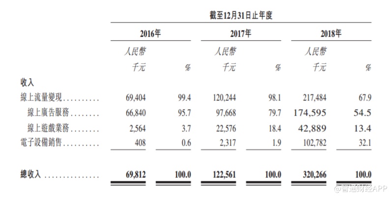 截至2016年、2018年及2018年12月31日止年度,该公司来自线上游戏业务的收入分别为260万元、2260百万元及4290百万元,分别占总收入3.7%、18.4%及13.4%。
