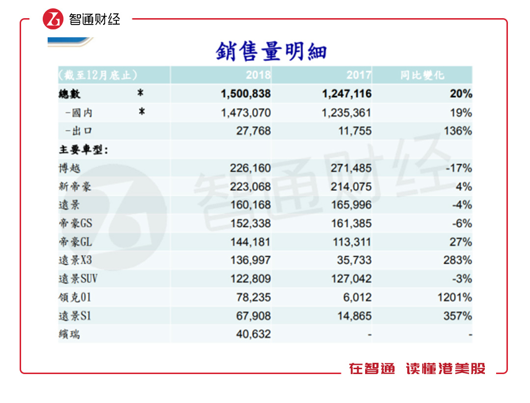 中国汽车市场萎靡,竞争激烈,吉利在稳住及提高国内市场份额的同时,也在积极扩张海外市场。该公司在年报中称,鉴于当前销售偏低,将引进更多新产品至主要出口市场,2018年的出口销量同比增长136%。