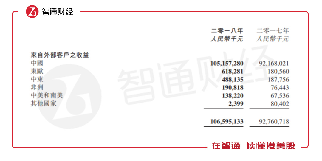 从市场收入构成上,中国依然是核心市场,2018年收入占比达98.65%,但海外市场收入增速要比国内快得多,2018年国内收入增长14.1%,而海外市场收入增速达42.6%,其中东欧市场增速最快,为242.2%,中东及非洲分别增长60%和49.6%。