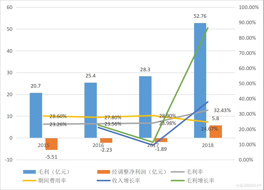 从公司各项业务的收入及盈利表现映射到整体业绩上,2018年可以说是具有纪念性的一年,一是毛利增长率远高于收入增长率,二是毛利率成功突破期间费用率,从而实现利润转正。通过对各项业务进行解析,可知公司净利润有望实现持续性增长。