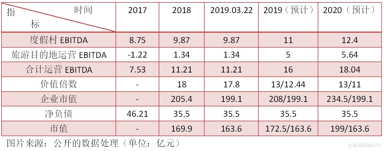 由于上述两项业务创收的稳健性,度假村EBITDA的2019年及2020年值采取历史增长法,即2018年的增长率作为计算,根据复星旅文方面预计,旅游目的地运营项目的EBITDA在2019年预计在4.5-5亿元之间,2020年采取同向变动法。