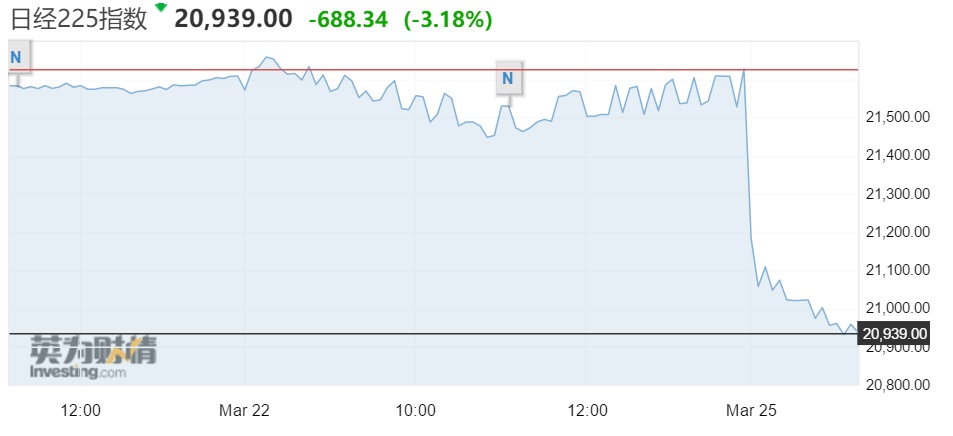 智通财经APP获悉,日本日经225指数今日低开1.7%,截至发稿,跌幅扩大至3.18%,报20939点,其中金融、工业制造板块领跌。