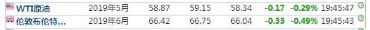 油价方面,WTI原油跌0.29%,报58.87美元/桶。布伦特原油跌0.49%,报66.42美元/桶。