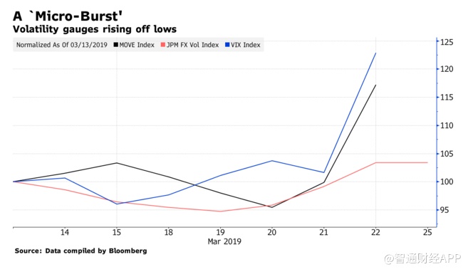 花旗集团利率策略师爱德华·阿克顿(Edward Acton)称之为波动率指标的“微爆发”。由于上周五出炉的欧洲制造业PMI指数表现不佳,美国股市大跌,美债出现倒挂现象。