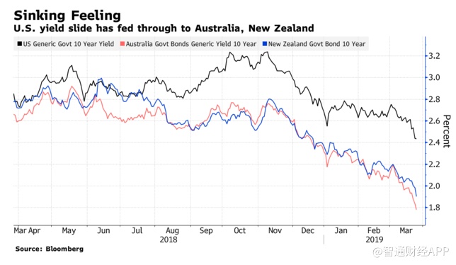 无独有偶,上周五德国10年期国债收益率自2016年以来首次跌破零;澳大利亚和新西兰10年期国债收益也跌入了记录最低点;亚洲市场早盘,国债期货交易量是正常水平的两倍多,其中日本10年期国债收益率跌至2016年以来的最低水平。