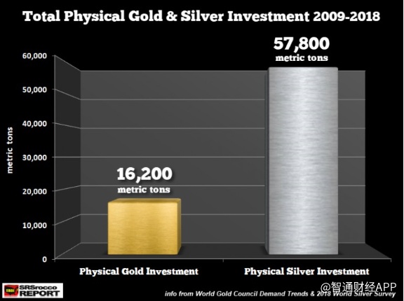 世界黄金协会和世界白银调查显示,从2009-2018年,投资者购买了16200吨黄金和57800吨白银。