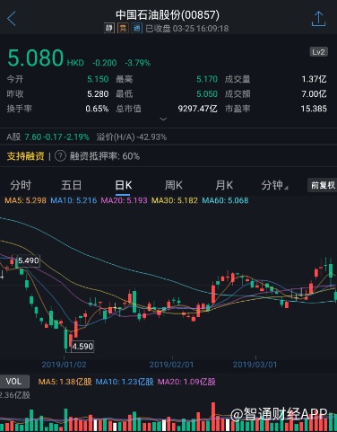 截至今日收盘,中国石油(00857)跌3.79%,报5.08港元。