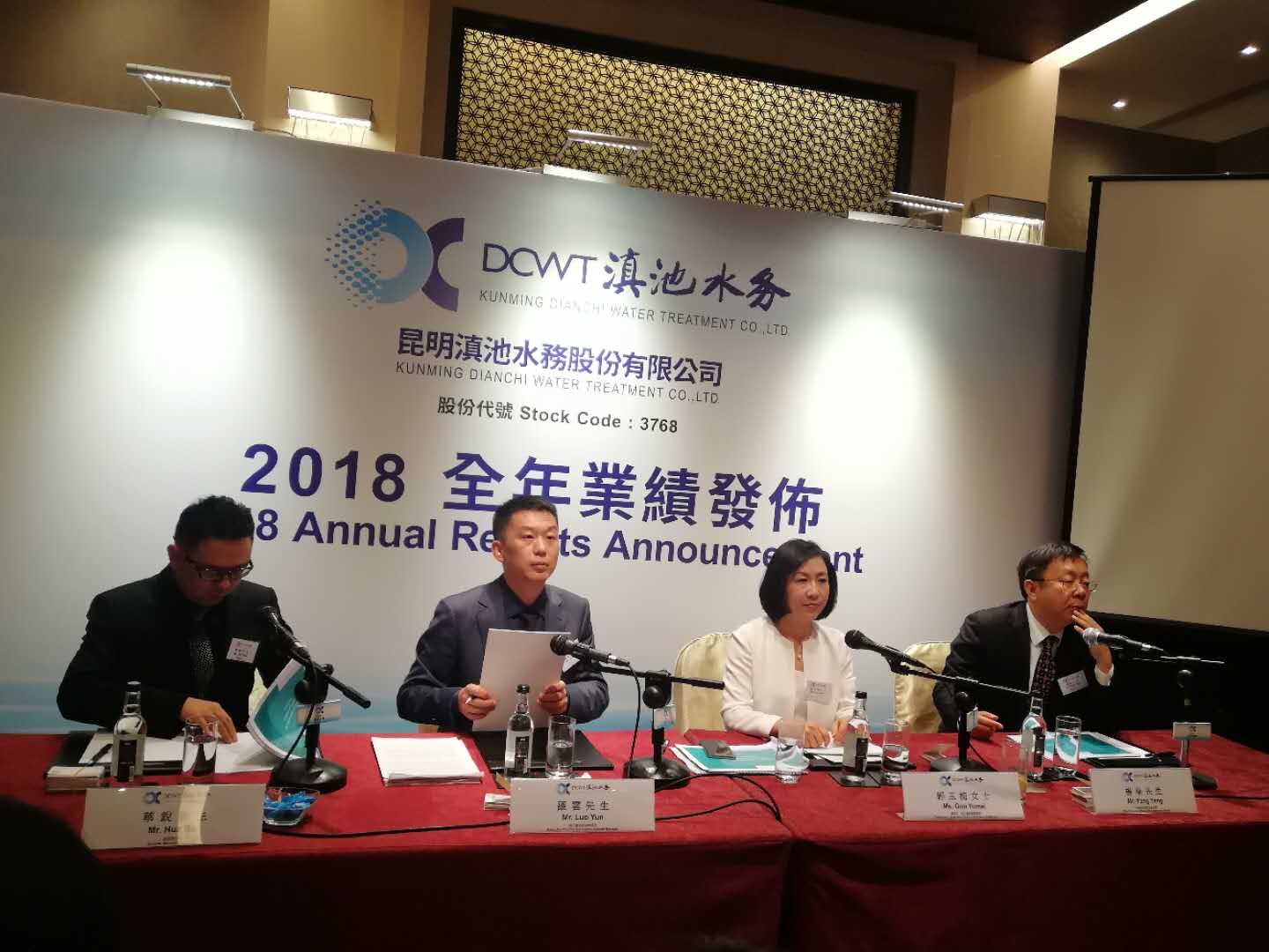 3月25日,滇池水务(03768)在香港举行2018年业绩会。