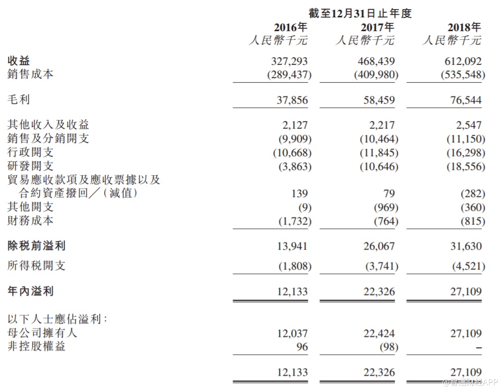 于截至2016年、2017年及2018年12月31日止年度,伊登的收益分别约为人民币327.3百万元、468.4百万元及612.1百万元,各期间纯利分别约为12.1百万元、22.3百万元及27.1百万元。同期,其毛利分别约为37.9百万元、58.5百万元及76.5百万元,总体毛利率分别约为11.6%、12.5%及12.5%。