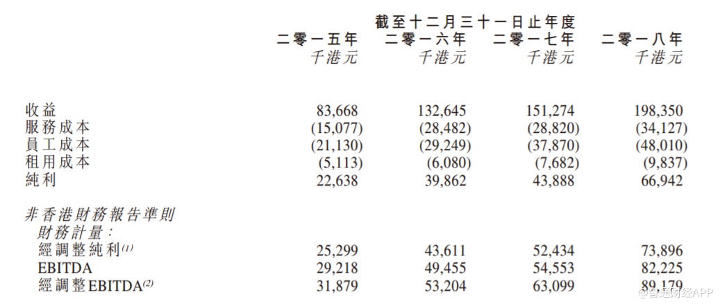 该集团的经调整溢利由截至2015年12月31日止年度约25.3百万港元增加约72.4%至截至2016年12月31日止年度约43.6百万港元,并于截至2017年12月31日止年度进一步增加约20.2%至约52.4百万港元,其亦于截至2018年12月31日止年度增加约40.9%至约73.9百万港元。