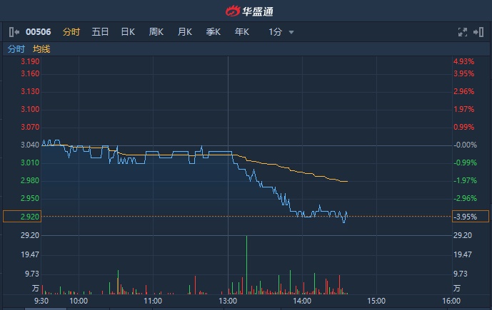 智通财经APP获悉,中国食品(00506)午后开盘直线跳水走低,截至14时35分,跌3.95%,报2.92港元,成交额达915万港元。