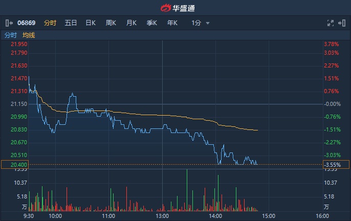 智通财经APP获悉,长飞光纤光缆(06869)今日高开低走,全天弱势,截至14时46分,跌3.55%,报20.4港元,成交额达8787万港元。
