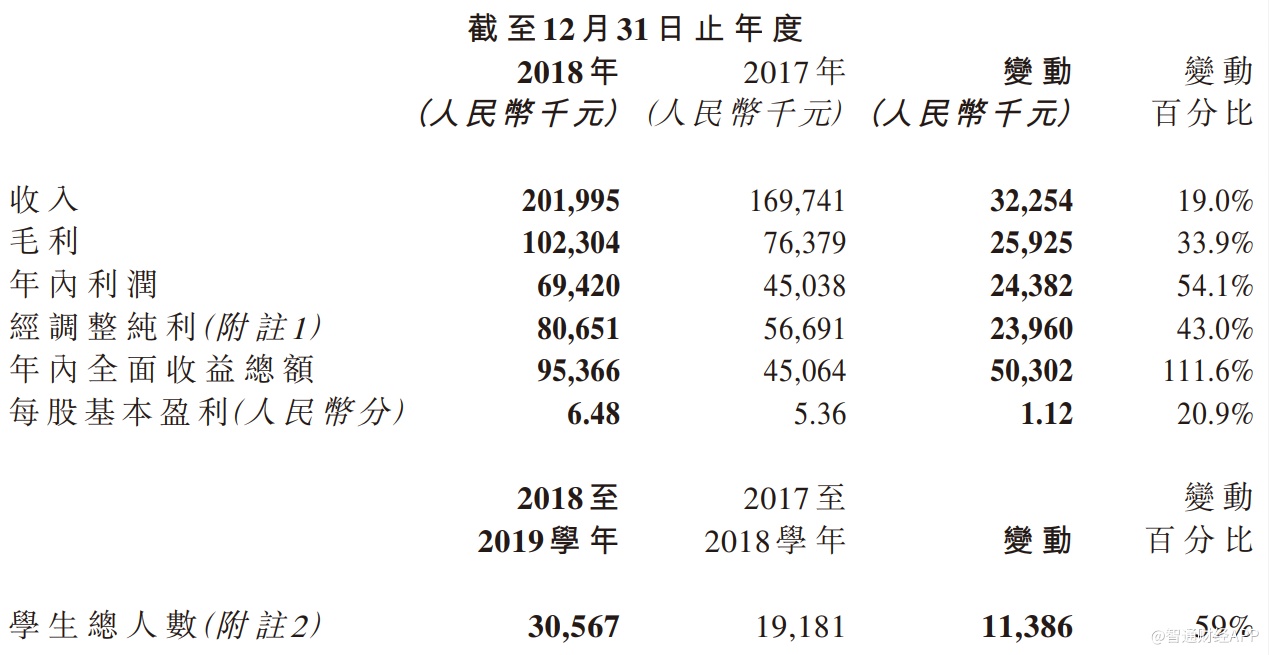 智通财经APP了解到,3月24日,21世纪教育发布2018年业绩,收入2.02亿元,同比增长19%,毛利1.023亿元,同比增长33.9%,经调整纯利0.807亿元,同比增长43%,公司学生总人数为30567人,同比增长达59%。